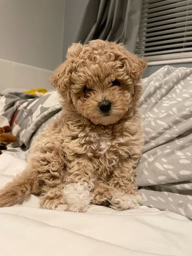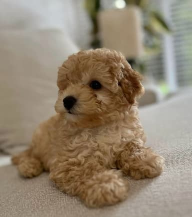 Playful and smart Maltipoo, hypoallergenic and trainable.