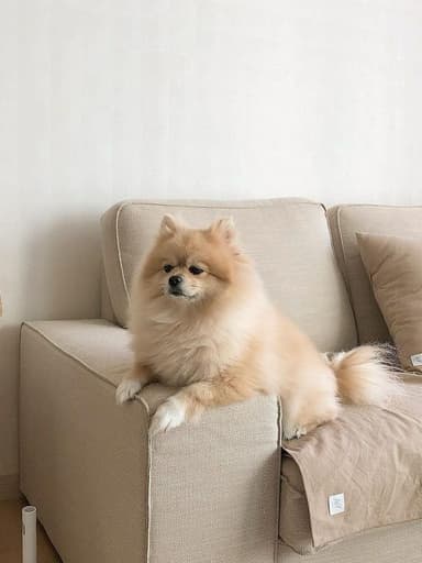 Fluffy and bold Pomeranian with a playful spirit.